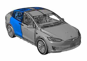 The Model X 2nd row passenger door has a unique style that can articulate on two axes of movement to allow the greatest level of ingress and egress. Each rear door consists of an upper and lower section. The movement of each section of door is powered by two electromechanical struts, for 4 struts per door and a total of 8 struts per vehicle. The struts are controlled by one electronic control module per door.