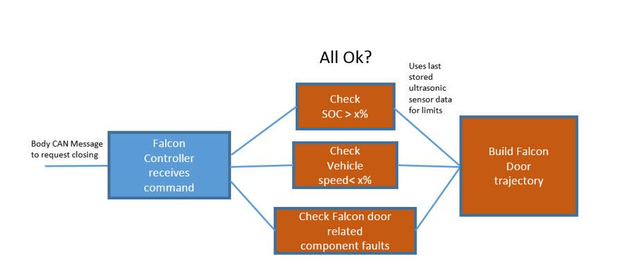 Similar conditions also apply for the rear doors to close. However, ultrasonic sensor data is not needed and the last stored position data for the environment is used to determine the closing profile.