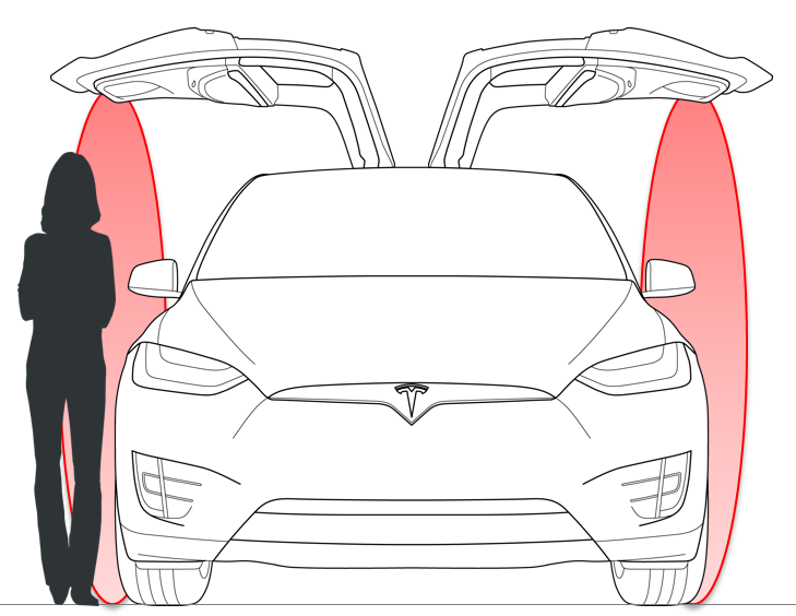 - The most wide profile, or right side of the blue area, is used whenever the controls want the fastest opening. Both the upper and lower door open at the same time. Obviously this is only possible when there is enough space next to the vehicle.