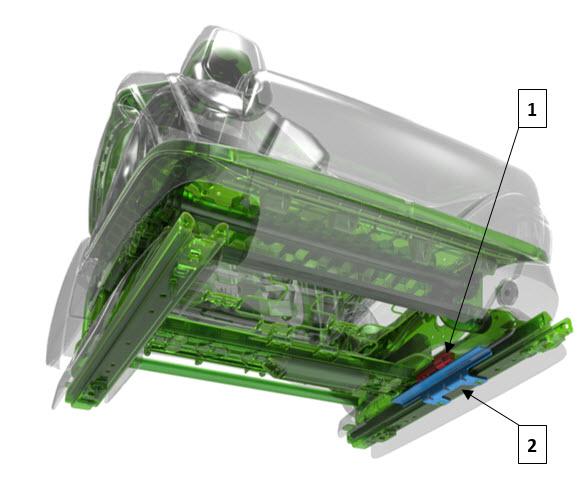 The sensor is attached to the seat track with two rivets.