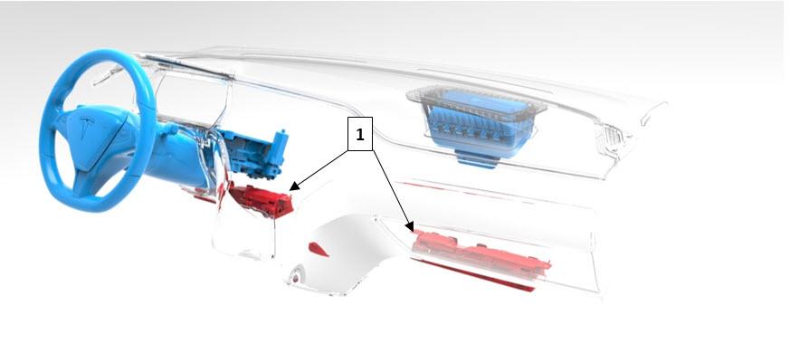 Upon detection of a circuit malfunction, the RCM sets a DTC and informs the driver by displaying the Tesla Restraint System airbag indicator in the instrument cluster.