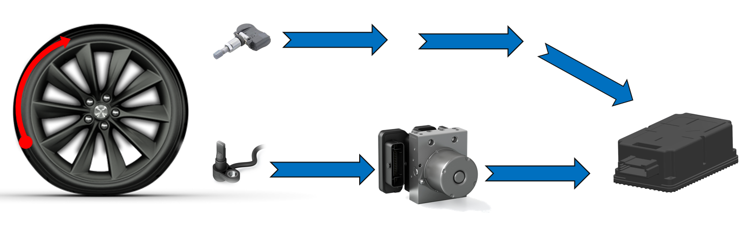 | TPMS sensor reporting wheel rotations (ticks) and wheel speed sensor (ABS) sharing info to TPMS ECU |