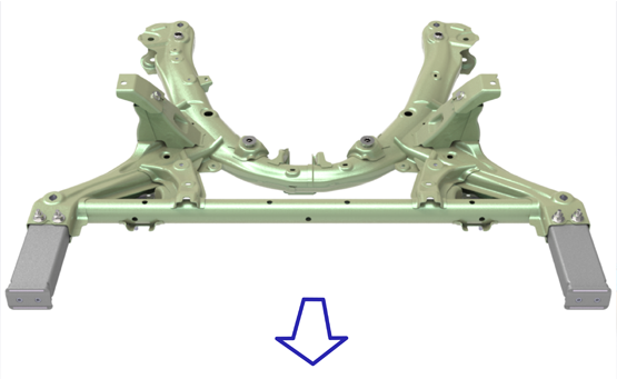 The rear suspension and subframe are compatible between Model Y Structural Pack and non-structural Model Y (single cast Rear Under Body - RUB). The only difference are the two Shear Plates (different profile).