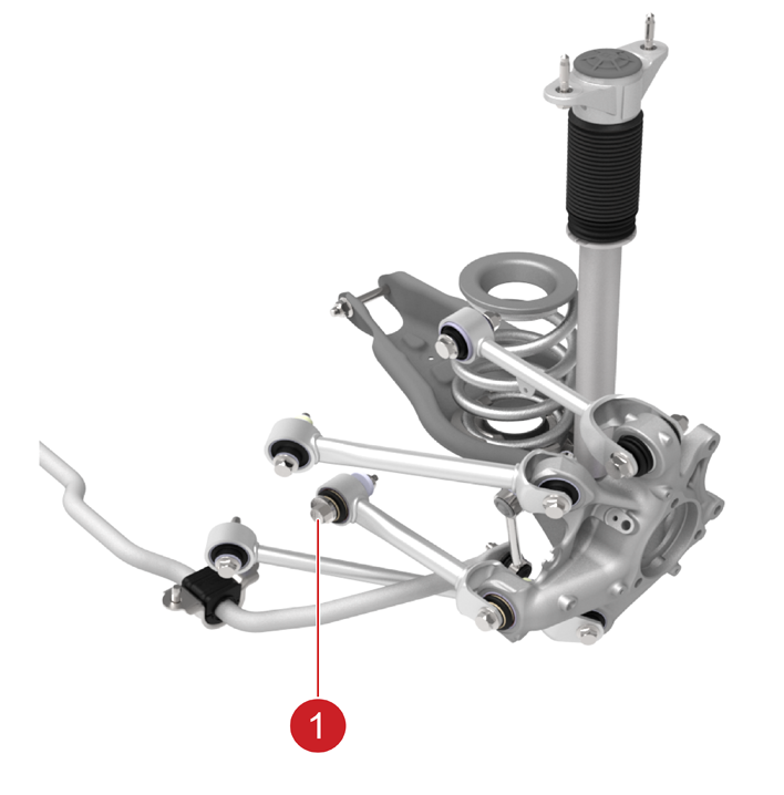 The suspension is serviceable by individual component replacement. If issues arise with any of the suspension links or their integrated bushings, the whole link must be replaced. The same is true with the subframes and the clevis mounting points. After suspension components are loosened, it is important to align the suspension to ensure the vehicle stability and correct tire wear.