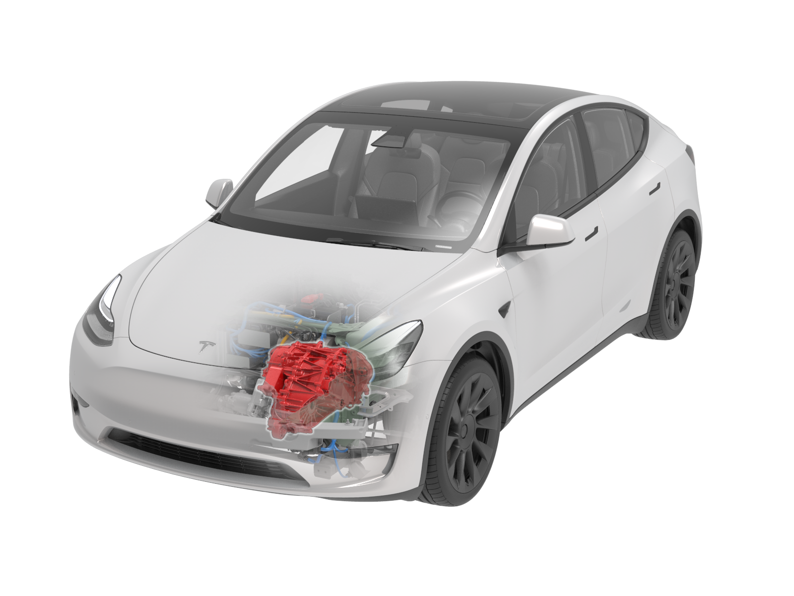 There are different types of motors to serve different purposes, but all of them follow the same principles. The torque in every electric motor is created is by two magnetic fields that interact to each other, causing forces that rotate the rotor. Depending on the way that the necessary magnetic fields are created, the motors are divided in different categories. The Model Y front drive unit is an asynchronous induction motor and rear drive unit is a synchronous permanent magnet motor (PM). Model Y has this exact configuration of motors because it is the most efficient configuration. The vehicle only needs one motor most of the time, which is the rear PM drive unit. The front drive unit is therefore often idling. The induction motor drive unit is therefore most suitable as a front drive unit as it is lighter, lower cost and has lower losses when unpowered.