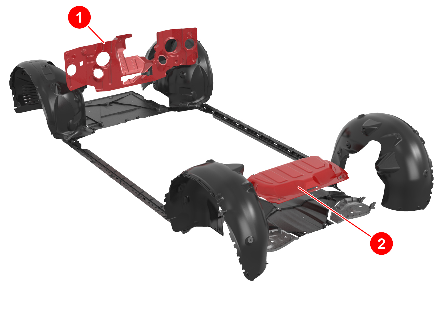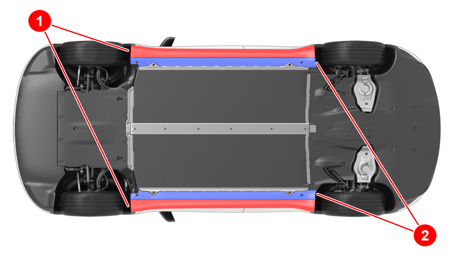 | 1. Front motor noise absorber 2. Rear motor noise absorber |