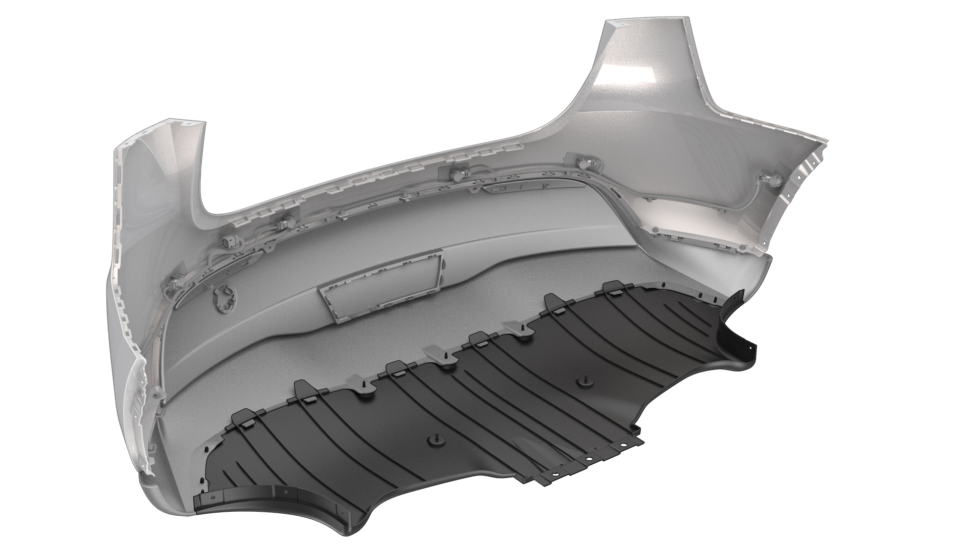 The front valence then mates to the front aero shield. The front aero shield covers the front subframe. The mid aero shield covers the rear subframe and attaches to the high voltage (HV) battery, while slightly overlapping with the wheel arch liners. The mid aero shield is located between the HV battery and the rear diffuser. The rear suspension covers attach to the control arms of the rear suspension. The rear diffuser is the last piece of the underbody aero system. It attaches to the mid aero shield, the trunk load floor, and the rear lower bumper fascia. It cannot be removed from Model Y without first removing the rear bumper fascia due to the use of buckle snaps.