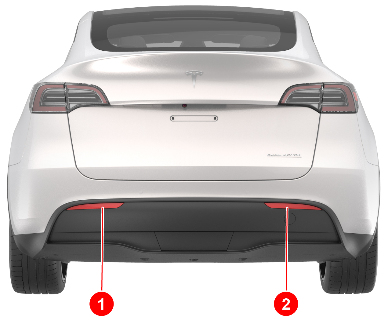 The rear fascia assembly includes the upper and lower fascia, two reflectors, the radar, the tow eye cover, and the tow hitch cover, which gives an outlet to allow Model Y to be towed from the rear.