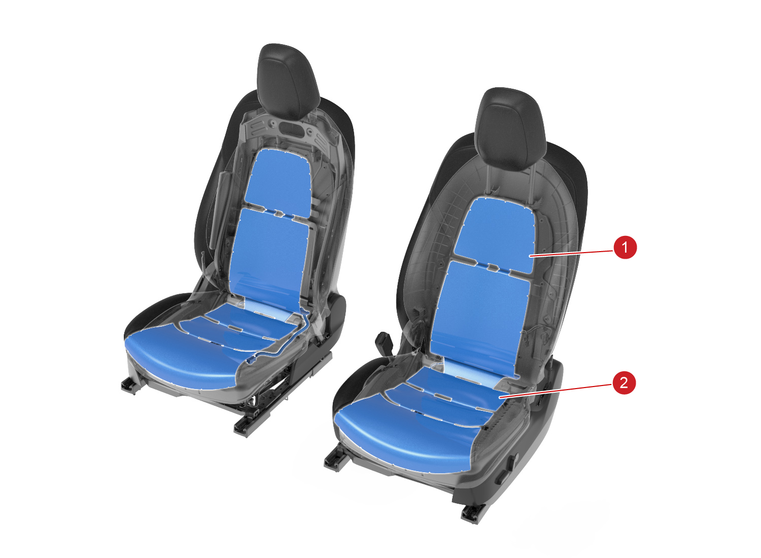 | 1. Backrest seat heater mat 2. Seat cushion heater mat |