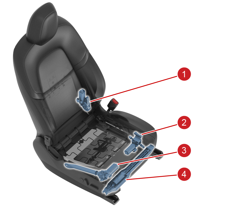 | 1. Recliner motor 2. Tilt motor 3. Height motor 4. Track Motor |