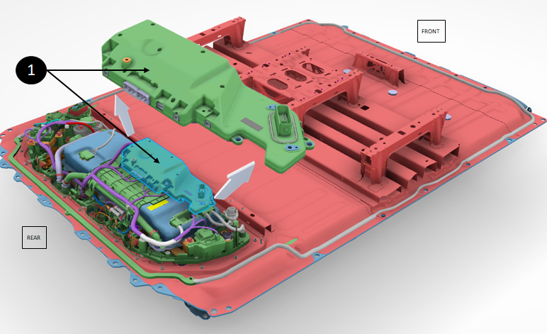 The rendering below shows the location of the fast charge contactor assembly with the following removed: