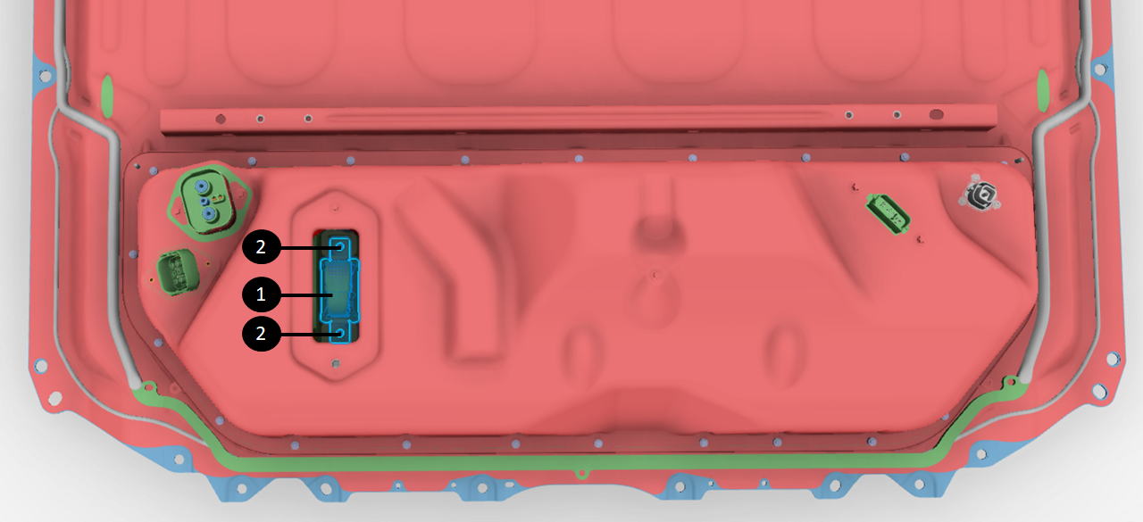 The fast charge contactor assembly connects the DC charge port inlet to the pack. This allows DC charging when the charging station or electric vehicle supply equipment (EVSE) is directly providing DC power to the pack.