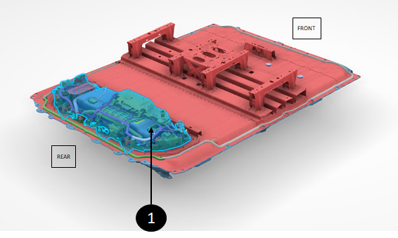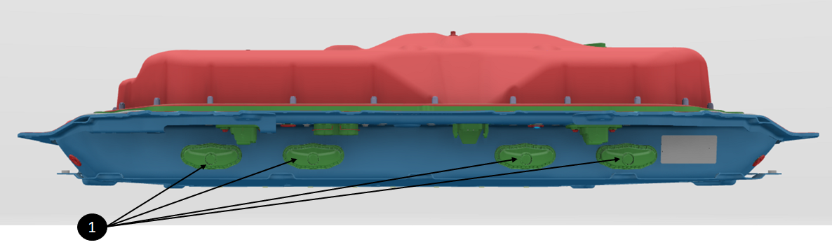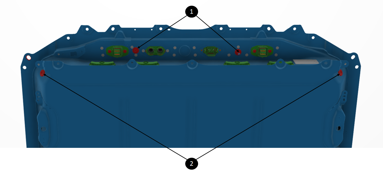 | 1. Four vent assemblies at the rear of the HV battery |