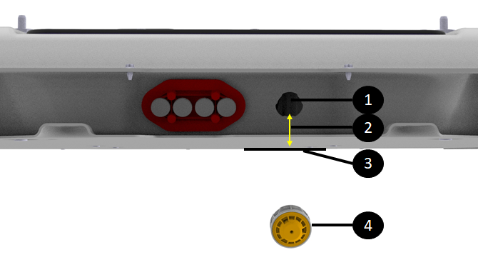 | 1. Hole opening with flood port opened 2. Lip between bottom of hole and enclosure floor 3. Enclosure floor 4. Flood port removed |