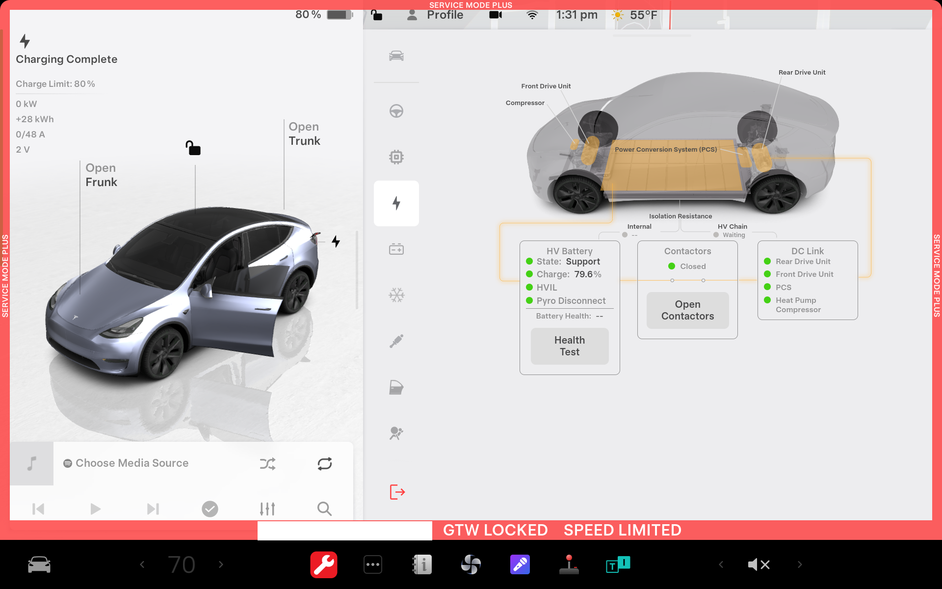 - HV battery status: operation mode, state of charge, HVIL status, and pyro disconnect status