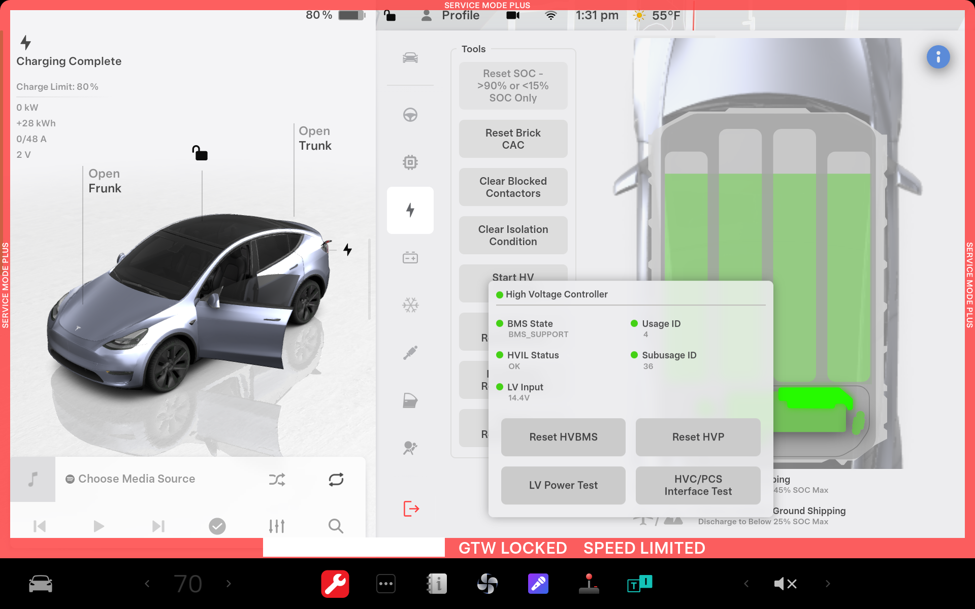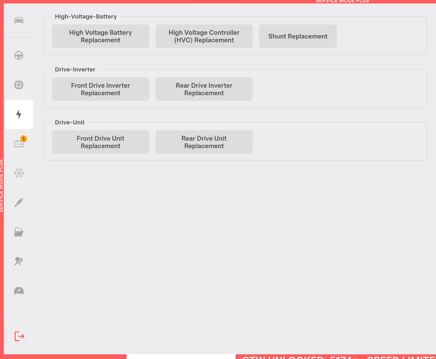 Service Mode Plus provides immediate visual identification of the health of specific vehicle subsystems. For the High Voltage system, three key panels are available: