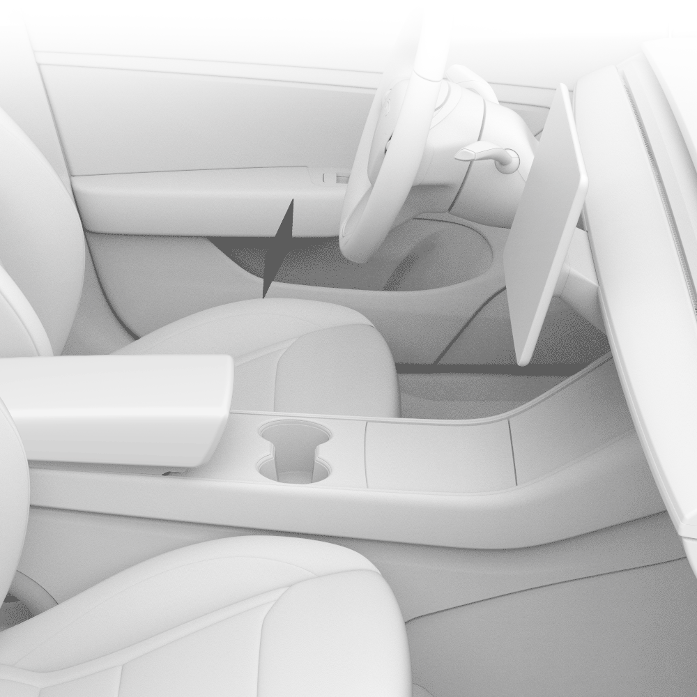 The NFC key card is a durable, waterproof device that contains no power source of its own. It functions using electromagnetic induction, which facilitates wireless power transfer and communication with a powered key card reader. NFC technology requires close proximity to the reader antenna to function, usually within about 4 cm. There are two NFC readers on the Model Y, one in the driver side B-Pillar applique half way down (under the camera), and the other in the center console behind the cup holders. The orientation of the NFC key card is important in order to achieve optimal detection distance and authentication time. It should be oriented vertically at the B-Pillar, and horizontally at the center console as shown. Tapping or "presenting" the NFC key card to the reader is the preferred usage method. Swiping may cause failure to complete the authentication process. Some items, such as NFC enabled cards like badges and credit cards, other metallic objects, or even a thick layer of ice and snow, can interfere with the electromagnetic field and cause severe degradation of performance. Severe bending, cracking, cutting, melting, or other mutilation of the NFC key card will cause permanent damage to the key card and may prevent proper operation. This includes a hole punch for a keyring.