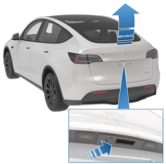 The Model Y rear trunk is a storage compartment located at the rear of the vehicle. The cargo space can be accessed by opening a powered liftgate, which is electrically operated by a powered struts controlled by the left vehicle controller and by a power cinch latch controlled by the right vehicle controller.