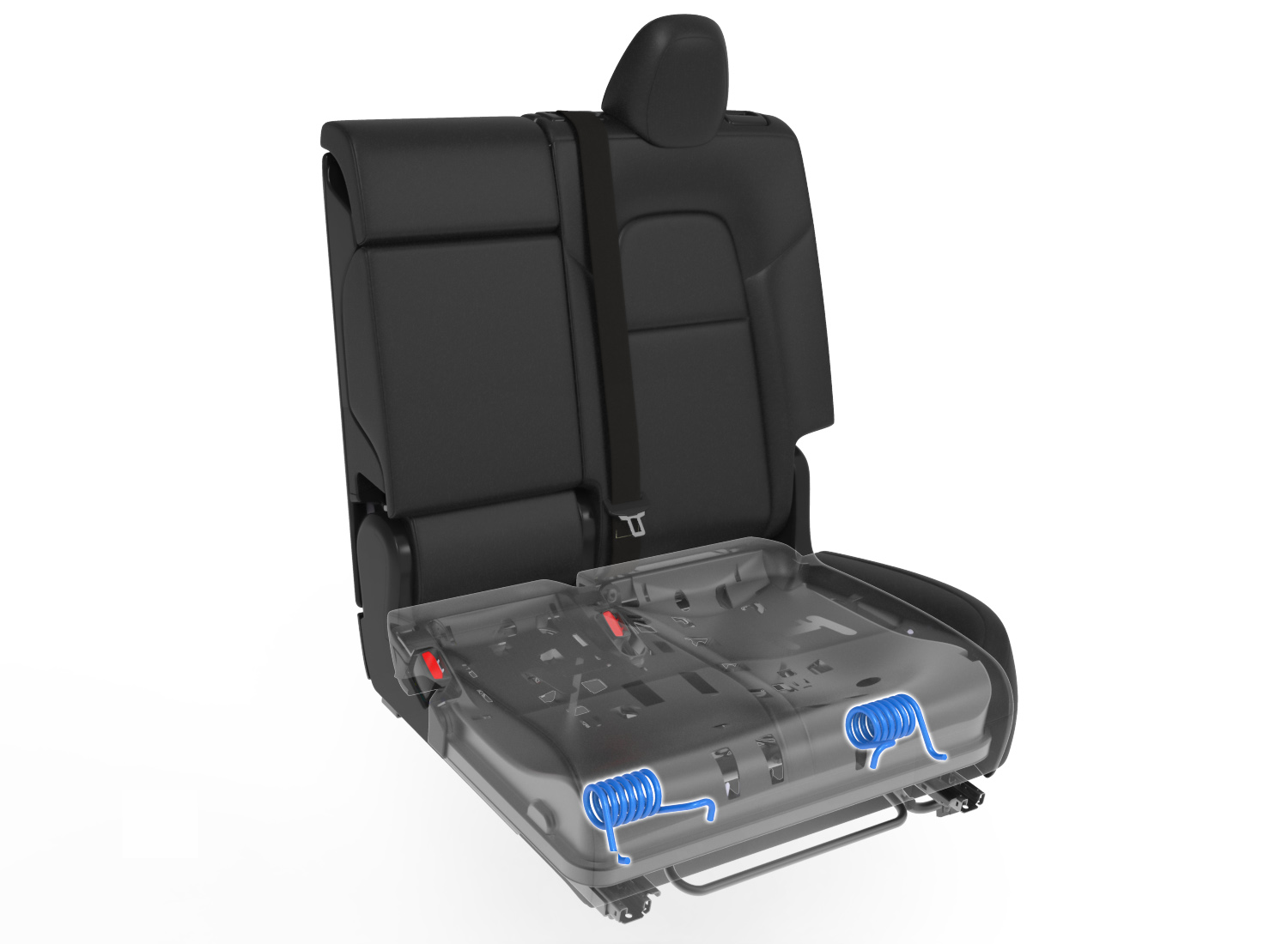 As mentioned earlier, the Model Y second row seat has a "dump" functionality. When the recliner actuator has actuated to release the seatback latch, the seatback spring then propels the seatback forward in order to dump the seat.