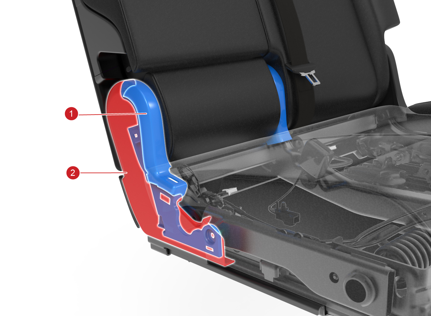 - The outboard shoulder of the rear seat - only available on the 5 seat interior.