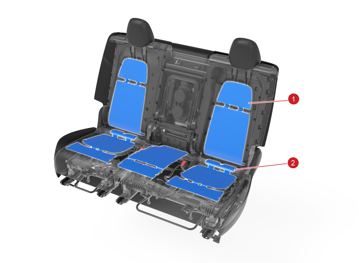 | 1. Backrest seat heater mat (x2) 2. Seat cushion heater mat (x3) |