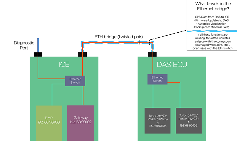 | Safety Management Subsystem (SMS) | Ensures that all DAS related subsystems (including the DAS board/Turbos themselves) are healthy. It also ensures all commands to take control of the vehicle are valid and assumes the job of Autopilot Secondary processor (APS). |