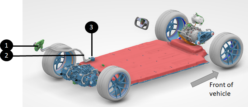 | 1. Front drive unit 2. Rear right performance drive unit 3. Rear left performance drive unit |