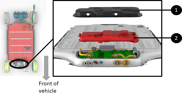 | 1. Front of vehicle 2. Rear of vehicle 3. HV battery |