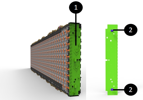 The module contains the cells of the HV battery and it is the source of energy and power for the vehicle.