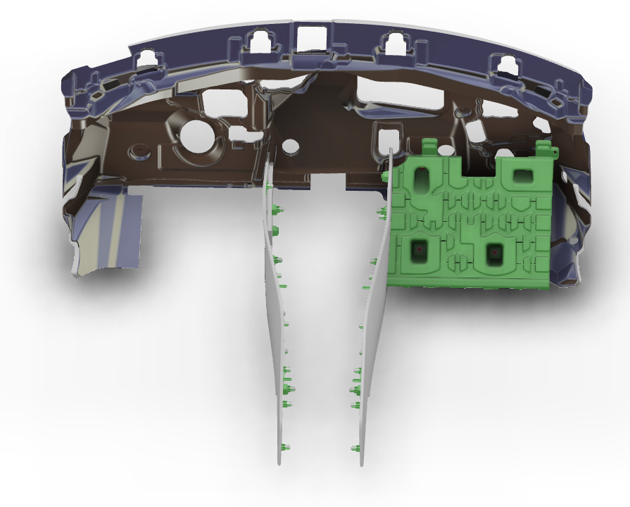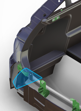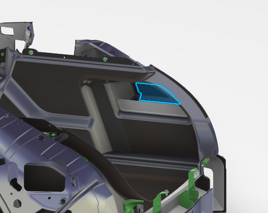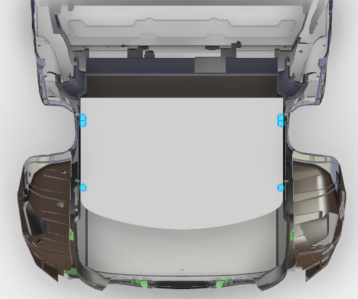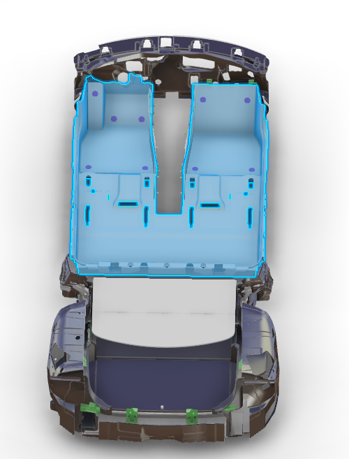Underneath the cabin carpet is the passenger footrest, which sits on top of the footwell cover located on the instrument panel (IP). The passenger footrest is intended to help protect the car computer as well as provide foot support to the first row passenger. Between the footwell cover, located on the IP and the footrest is a noise, vibration, and harshness (NVH) pad to help mitigate any road noise.