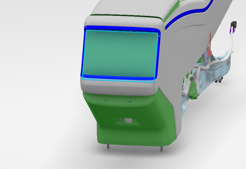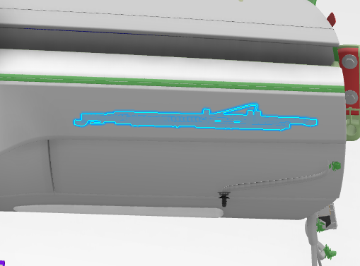 Each door has 3 areas that get illuminated. The map pocket has illumination via an LED tube located in the armrest. This LED can be accessed by removing the service panel under the armrest. The decor has bright work which is an RGB LED strip that communicates on local interconnect network (LIN) to the left or right vehicle controller. This ambient lighting is not constantly on. The customer can trigger different lighting modes via the UI. In addition, ambient lighting will turn on white during ingress/egress. There is also a puddle lamp located at the bottom of the door which illuminates when the door is open.