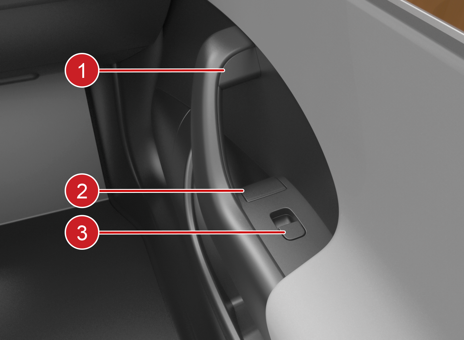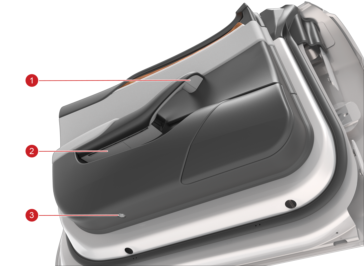 | 1. Capacitive interior release button 2. Emergency door release lever 3. Window switch, front right function |