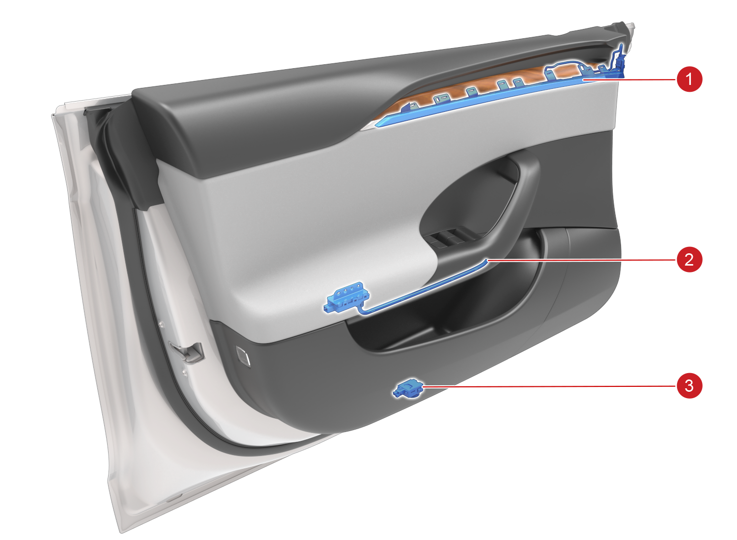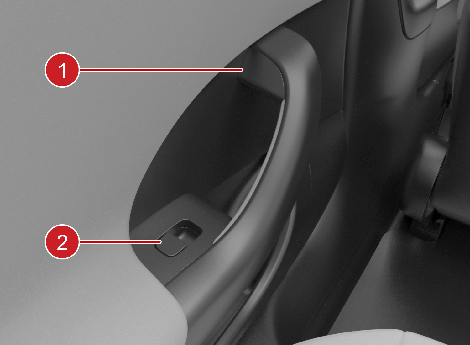 | 1. Capacitive interior release button 2. Window switch, rear function |