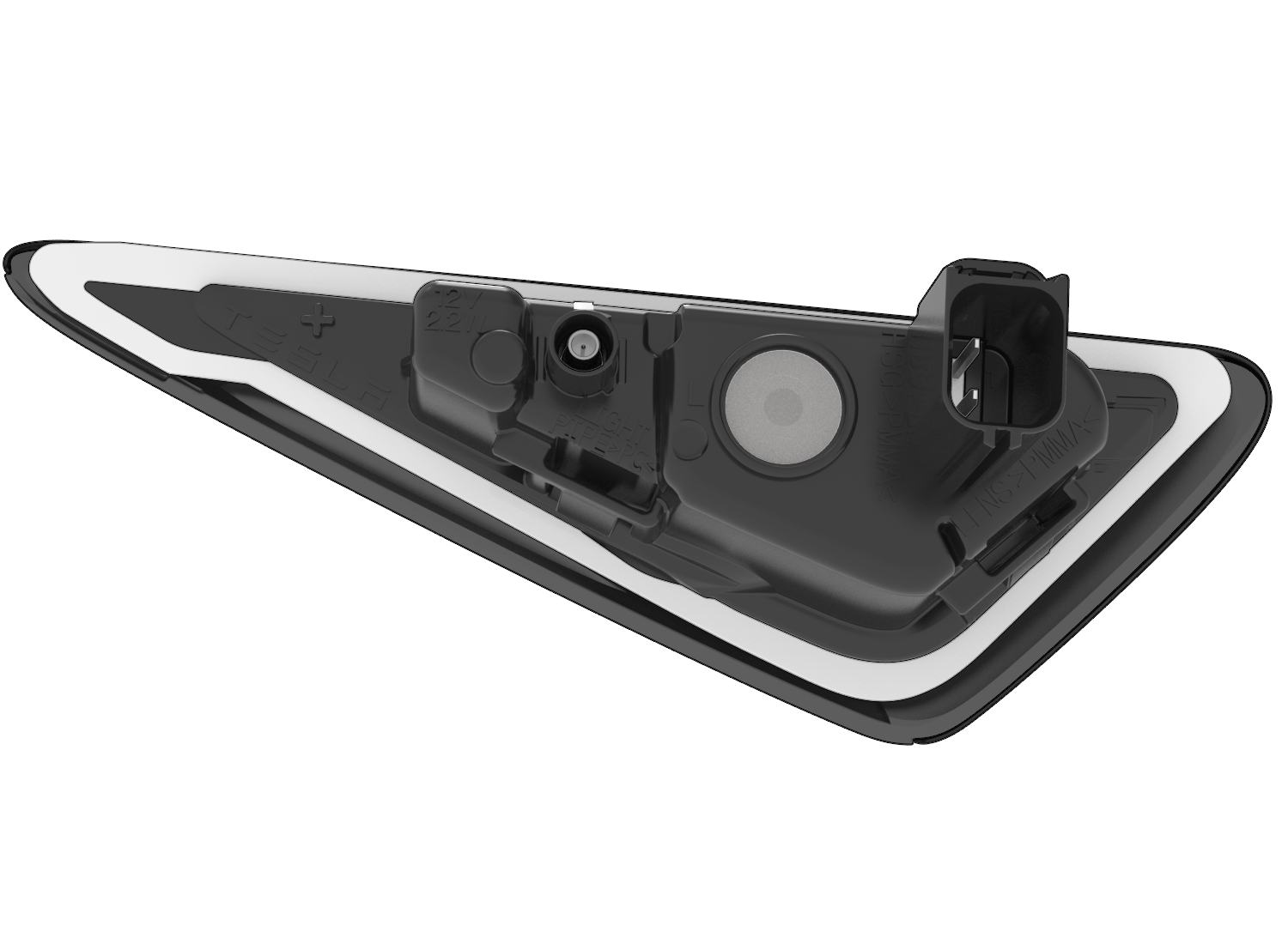 2021+ Model S side repeaters have an integrated camera for Autopilot functions.The side repeater lights are controlled by VCBATT (left) and VCFRONT (right side). The side repeater assembly must be replaced as an assembly; individual components (LED, Camera) are not serviceable.