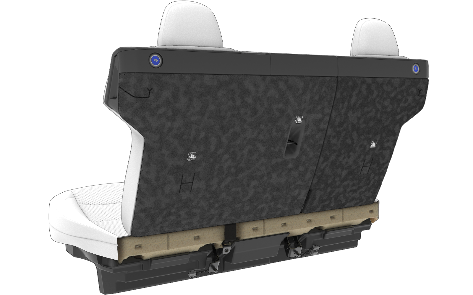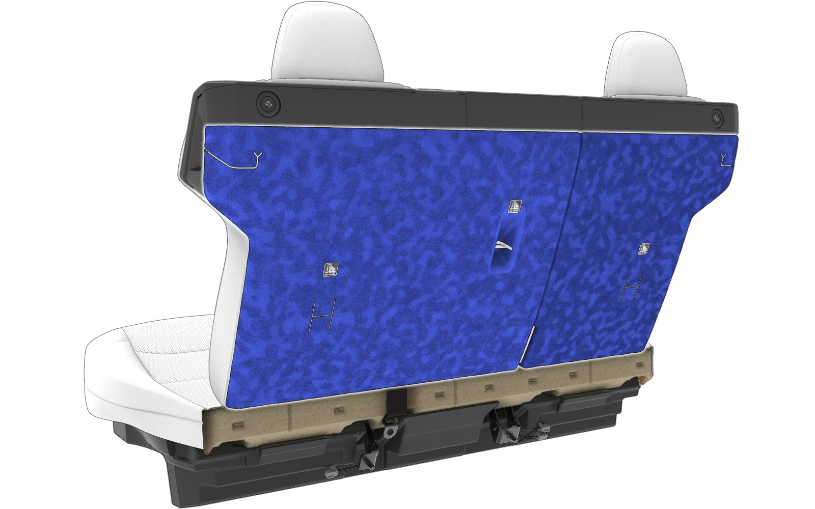 The second row is comprised of two separate backrest frames. The 60% and the 40%. The 40% contains the right hand second row passenger and the 60% contains the left hand and center passenger positions, with the center position being referred to as the 20%. For 2021+ Model S, these structures are stand alone frames with the seat cushion bench being one piece that sits atop the Ancillary Bay.