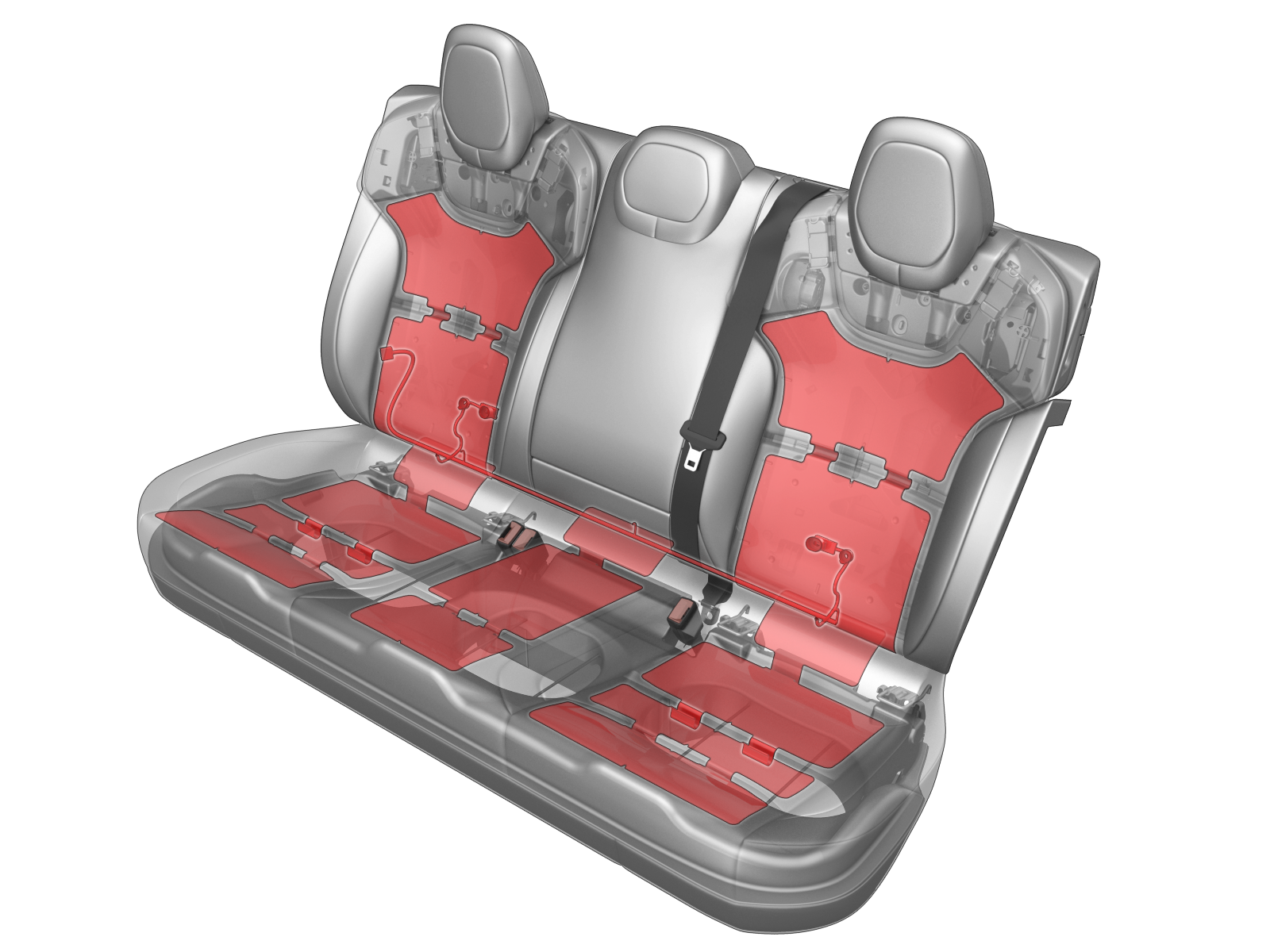 Occupant sensors distributed throughout the cushion help to prevent situations where small items might trigger the seat belt reminder indicator. At the time of publishing this document, the resistive pad, or seat belt reminder, located in the second row cushion is not a serviceable component. This is due to the infrequency of which this part needs to be replaced as well as current production capability.