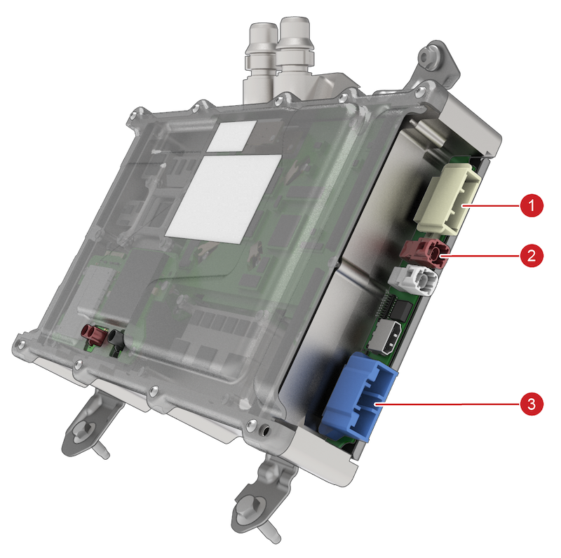 | 1. Secondary power + CAN 2. Ethernet to Infotainment board 3. Primary power + Audio + CAN |