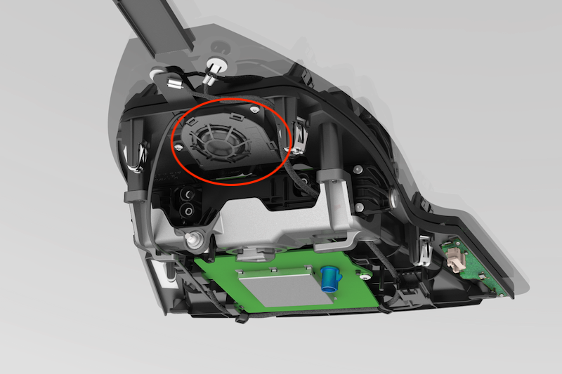 In order to give feedback to the driver when they need to take over control in a situation where the UI is not able to provide a visual or audible warning, the Driver Assistance ECU has a direct connection to a dedicated speaker. The speaker is located below the glove box. In order to give feedback to the driver when they need to take over control in a situation where the UI is not able to provide a visual or audible warning, the Driver Assistance ECU has a direct connection to a dedicated speaker. The speaker is located below the glove box.