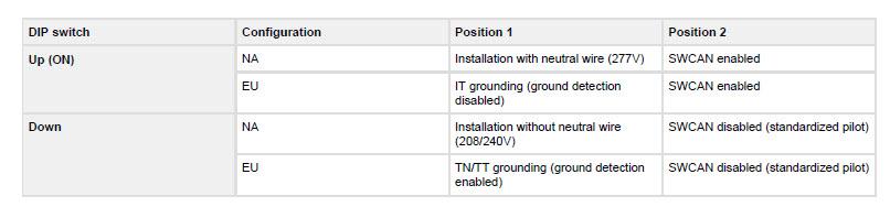 - If DIP switch position 2 is set to 1 (“SWCAN mode”) and vehicle does not assert EVSE accept, Wall Connector switches to legacy mode automatically after 10sec delay