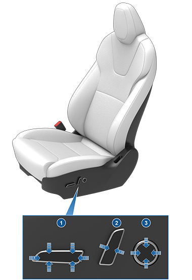 - Track: Forwards and backwards, moves the seat closer or further away from the steering wheel.