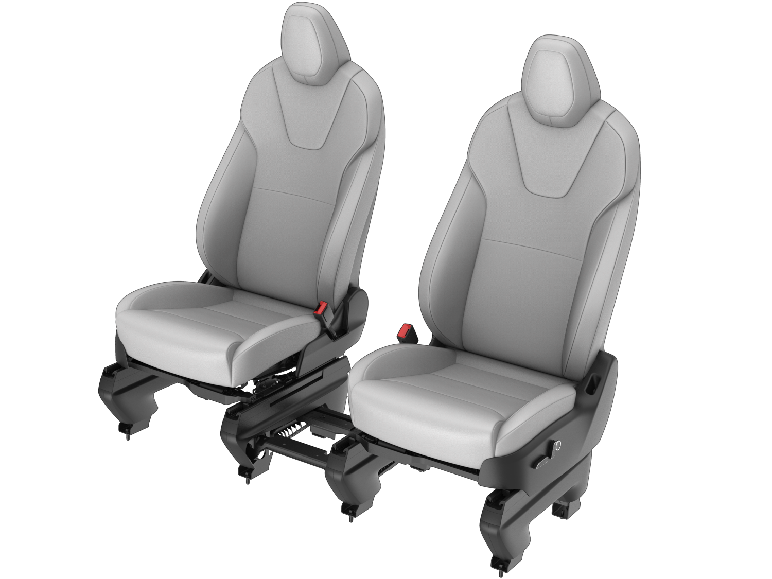 First row seats have a total of 4 electric 12V DC brushed motors that control the different seat adjustment functionalities. This includes track, lift, tilt, and recline adjustments.