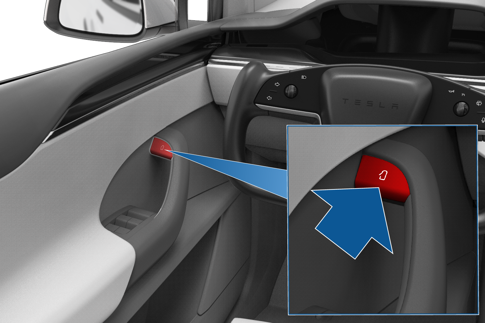 - Opening from inside the vehicle by pressing the interior door handle button.