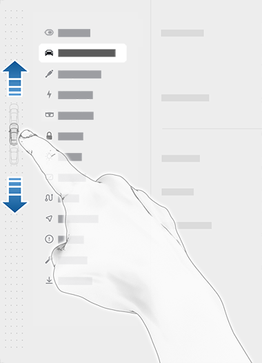 Using the touch screen: When pressing the brake pedal while parked, a gear strip displays on the left side of the touchscreen. Use this gear strip to shift 2021+ Model X into Drive or Reverse. Swipe up for Drive or down for Reverse.
