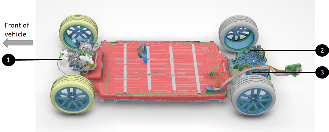 | 1. Front drive unit 2. Rear right performance drive unit 3. Rear left performance drive unit |