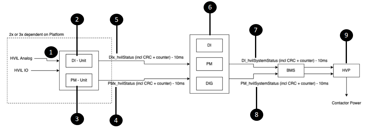 - HVIL states (open, closed, or missing) from all inverters, with the number of inverters varying by vehicle configuration: