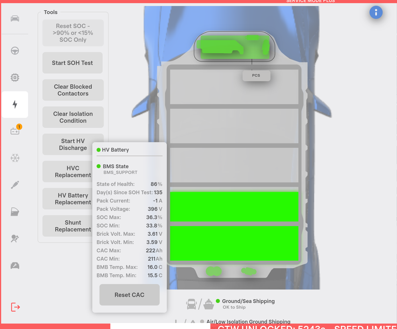 Service Mode Plus provides immediate visual identification of the health of specific vehicle subsystems. For the High Voltage system, three key panels are available: