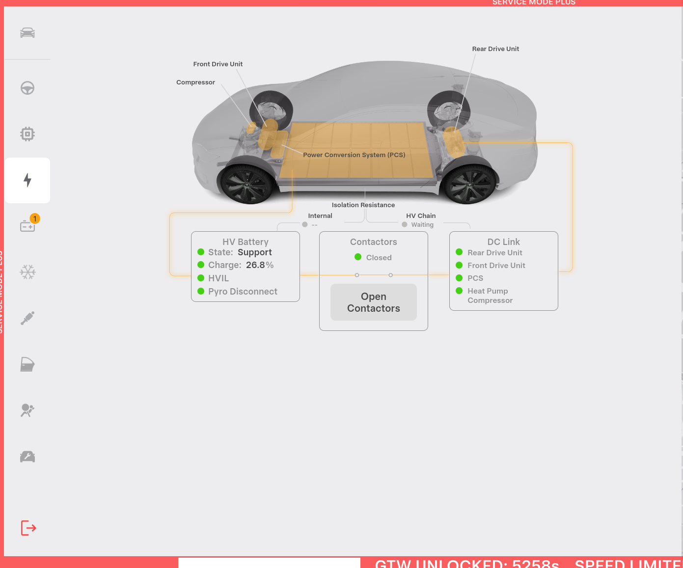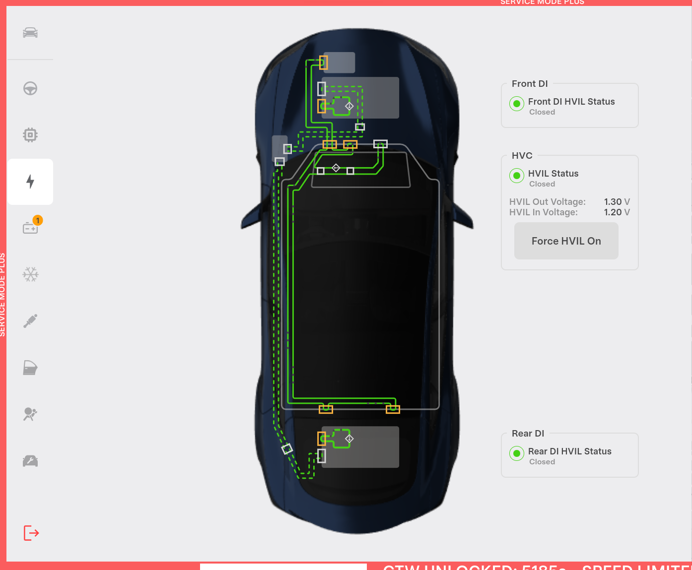 - A button to force HVIL ON, useful for troubleshooting faulted HVIL conditions when the HVC turns off the HVIL power source.