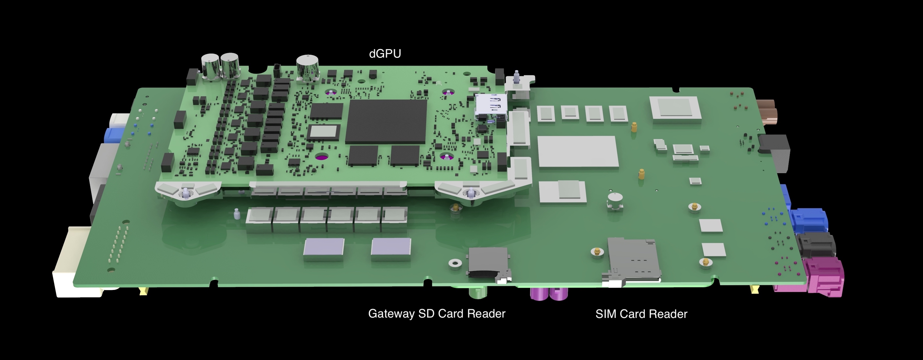 The connectivity card and dGPU are daughter boards of the Ryzen infotainment board.