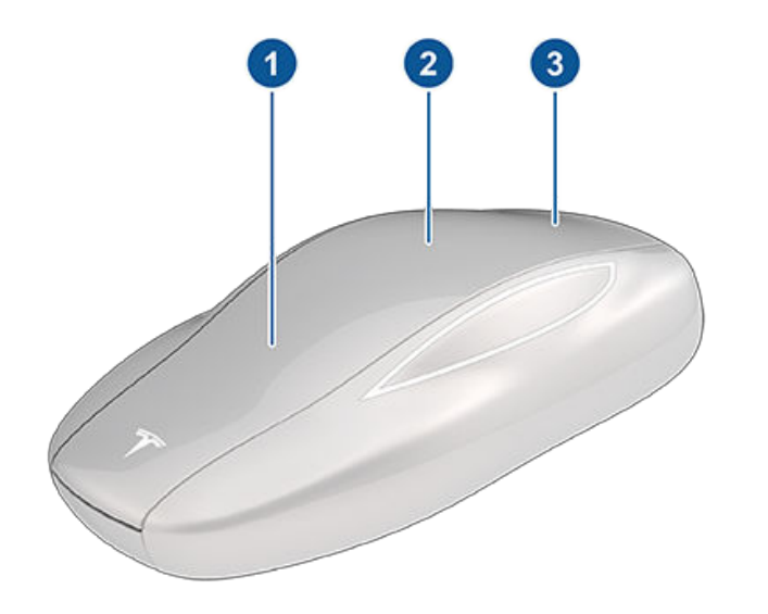 The key fob offers RKE features, locking 2021+ Model X when pressing the key fob top area once and unlocking it when pressing twice. It is equipped with Passive Entry hardware, unlocking and locking 2021+ Model X when the key fob is within 1 meter. The key fob can also be used like an NFC key card.