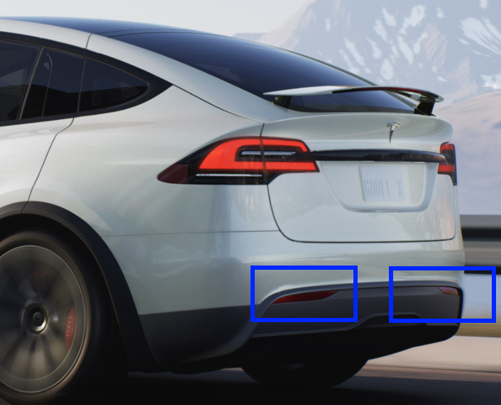 2021+ Model X has rear lamps on the body and liftgate. The break lights, turn signals, and tail lights use separate LEDs.